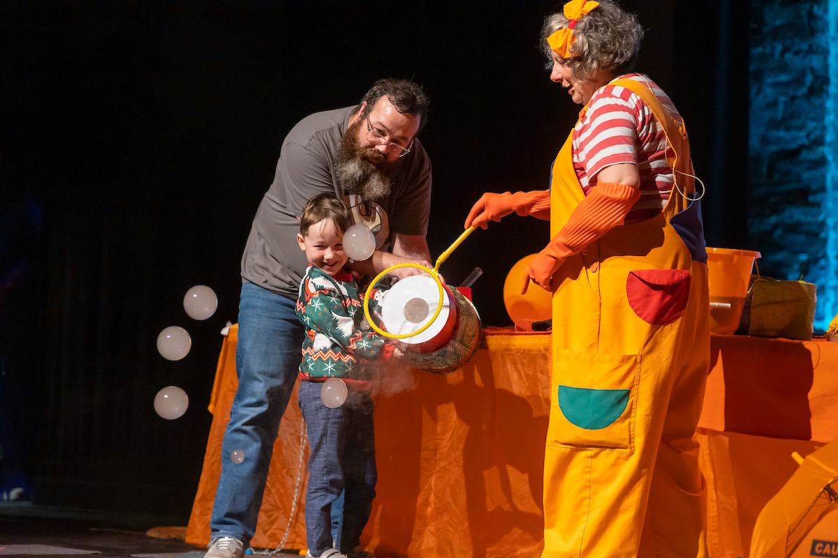 Audience: families, young children Riddle me this – why does our breath blow up a balloon silently, but a loud…