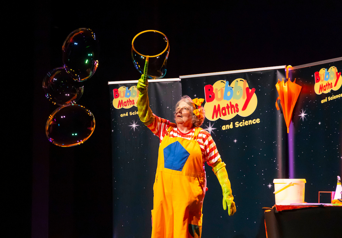 Caroline Ainslie brings laughter and games to rich mathematical activities. Bubbly Maths present fun math shows and fun workshops using soap bubbles and balloons. These workshops and shows are great for primary-aged children from 3 to 11 in schools, at home and at fun events, such as festivals and fairs. Bubbly Maths Entertainers perform maths shows in the UK and around the world, engaging audiences using mesmerizing resources. The props? Magical soap bubbles and giant balloons.